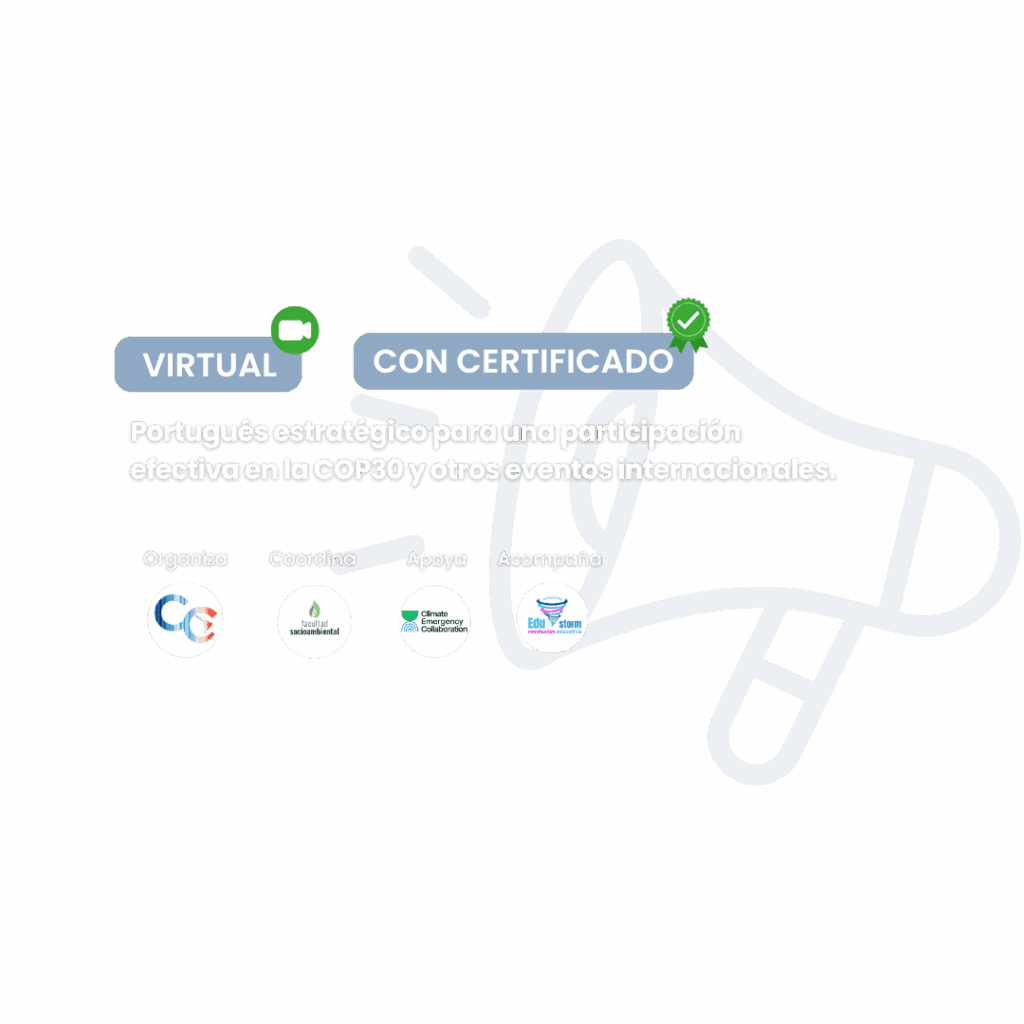 En este seminario, organizado por la Coalición para Latinoamérica de Acción Climática (CLAAC) y la Facultad Socioambiental de Eco house, vamos a brindar las herramientas idiomáticas necesarias para superar estas barreras y maximizar el impacto de las personas de Argentina y la región que planean asistir a la COP30 u otros eventos internacionales de similar envergadura. Aunque no tengan planificado ir a la COP30, podrán aprovechar el seminario para incorporar vocabulario climático en portugués y llevarse herramientas para potenciar sus proyectos a nivel internacional.